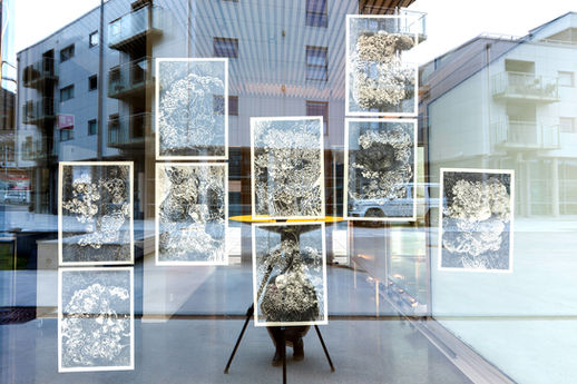 Denne serien består av tegninger som har sitt utgangspunkt i et enkelt tre – dets røtter, bark, grener og utvekster. Treet studeres her som en levende organisme, ikke som symbol, men som kropp – med røttene som forankring, bevegelse og startpunkt. Det som begynner i det konkrete forgrener seg gradvis mot det abstrakte. Den tegneriske bearbeidingen løfter frem et slektskap mellom treets strukturer og andre biologiske former – også menneskets. Tegningene er en invitasjon til det imaginære og drømmeaktige – til et sted hvor transformasjon skjer og form forvandles til teksturerte mønstre i en ny enhet.